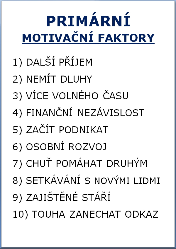 Jaké jsou Vaše primární motivační faktory, jaké je Vaše očekávání?